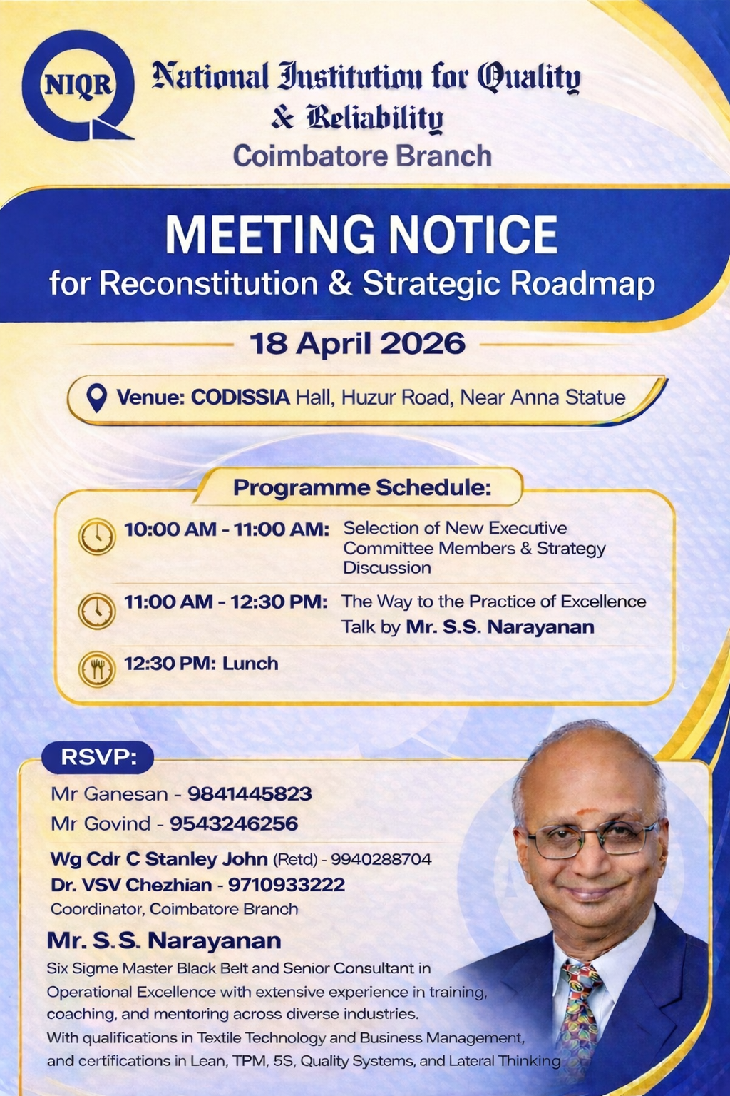 250th Quality Awareness Programme by NIQR Chennai Branch on 8th & 9th Nov 2024