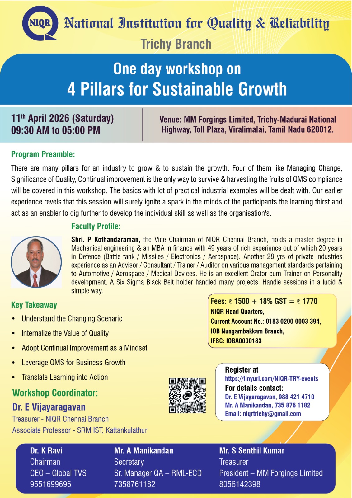 Total Productivity Maintenance by NIQR Puducherry Branch on 26th & 27th Sep 2024
